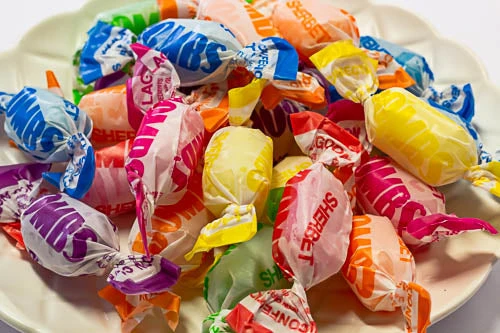 Ingredients –Â Sugar, Glucose, Flavour, Colour 102, 110, 122, 133, 142, Food Acids 334.