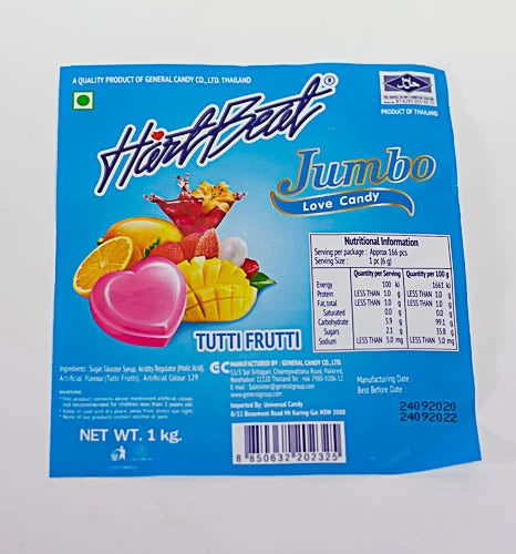 Ingredients: Sugar, Glucose Syrup, Acidity Regulator (malic acid), Artificial Flavour (tutti frutti), Artificial Colour (129)