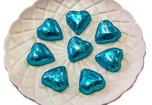 Milk Chocolate Hearts in Aqua Blue Foil