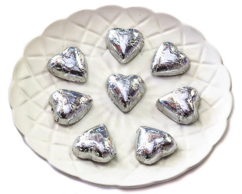 Milk Chocolate Hearts in Silver Foil
