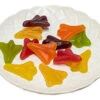 Ingredients: Glucose Syrup (wheat or corn), Cane sugar, Thickener (1401or1420), Gelatine, Food Acid (citric acid), Flavours, Colours (102,122,110,133,124). CONTAINS WHEAT STARCH. Made in Australia