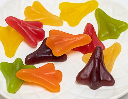 Ingredients: Sugar,m Glucose syrup (from Wheat and corn), Invert sugar, Thickener (1401, from Wheat), Gelatine, Food acid (330), Colours (163, Spirulina, 160c, 100), Glazing agent (vegetable oil, 903), Flavours. CONTAINS WHEAT Made in Australia