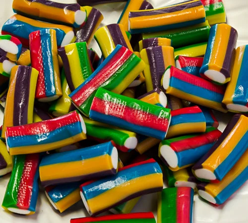 Ingredients: sugar, glucose fructose syrup, invert sugar syrup, modified corn starch 1401, wheat starch, corn starch, palm fat, wheat flour, humectant: glycerol, acids: citric, malic, potato starch, gelatine, emulsifier: mono and di-glycerides of fatty acids, flavourings, acidity regulator, potassium citrates, vegetable oil, coconut fat, salt, fruit and vegetable concentrates: blackcurrant, carrot, colours: 100, 120, 133, 171. Made in Spain