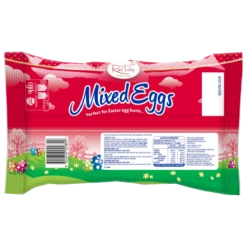 Contains Dark Chocolate 30%. Ingredients: sugar, glucose-wheat, water, cocoa mass, vegetable fat, milk solids, emulsifiers-322, soy, 276, flavours, dried egg white, humectant 422, food acid-citric, enzyme-invertase. Contains sulphites, May contain traces of nuts. Dark Chocolate continas Cocoa Solids 37%. Made in Australia