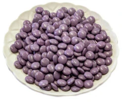 Chocolate Drops are oblate spheroids with a minor axis of about 5Â mm (0.2Â in) and a major axis of about 12Â mm (0.5Â in). They come in colours: red, yellow, green, blue, mauve, pink and white.