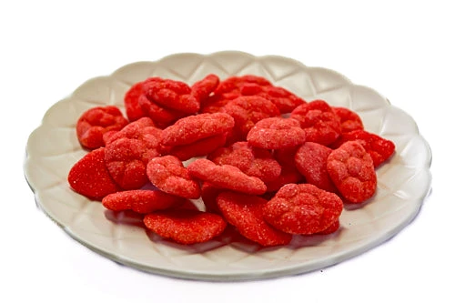 Ingredients: Corn Syrup, Sugar, Fruit Juice (apple), Modified Starch, Gelatin, Dextrose, Sorbitol, Malic Acid, Citric Acid, Fumaric Acid, Flavours, colours (E124, E120). Gluten Free
