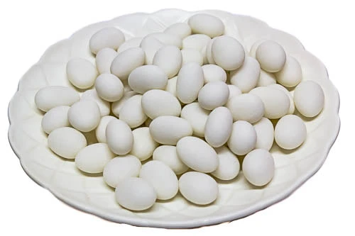 Ingredients: Sugar, Almonds, Rice & Wheat Starch, Arabic Gum, Wheat Flour, Flavouring. CONTAINS WHEAT & NUTS.